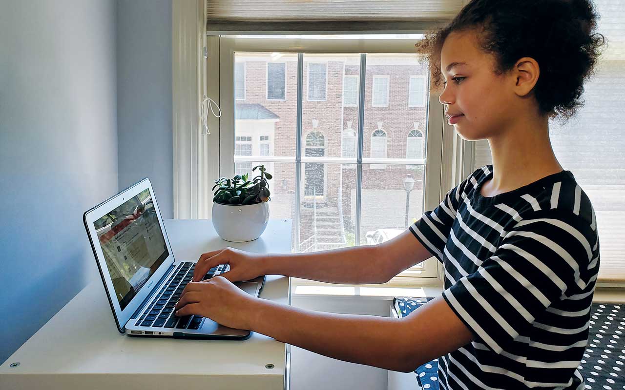 In June, Lana Heard, 11, graduated from fifth grade at Thomas Jefferson Elementary School in Falls Church. This fall she’ll attend Mary Ellen Henderson Middle School, where her brother, Corey, recently graduated from eighth grade. Lana’s mom, Eden, is an attorney with the federal government. Her dad, Addison, is a consultant with Booz Allen Hamilton. Both parents worked from home full-time during quarantine. Falls Church City Public Schools conducted distance learning through a platform called Schoology. Teachers did introduce some new content, but all fourth-quarter grades were pass/fail.