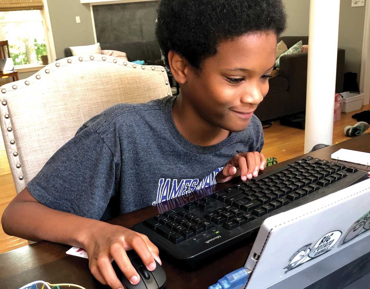 Even without the incentive to raise his grades (he already had A’s), Miles continued to participate in weekly school projects—writing poetry and sharing it with his English class using the Flipgrid app; building a circuit board for his robotics class; identifying wildlife around his home (his family retreated to their lake house in Orange County, Virginia) for a science project.