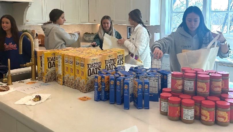 Last winter, an online fundraiser organized by the Feeding Hope Project netted more than $1,000 in donations, which organizers then invested in 603 pounds of kid-friendly foods such as mac and cheese, peanut butter and pasta. “Once we had all these supplies—we had 100 of everything—we had a bunch of other kids from our area and our high school come and help pack it,” Peale says.