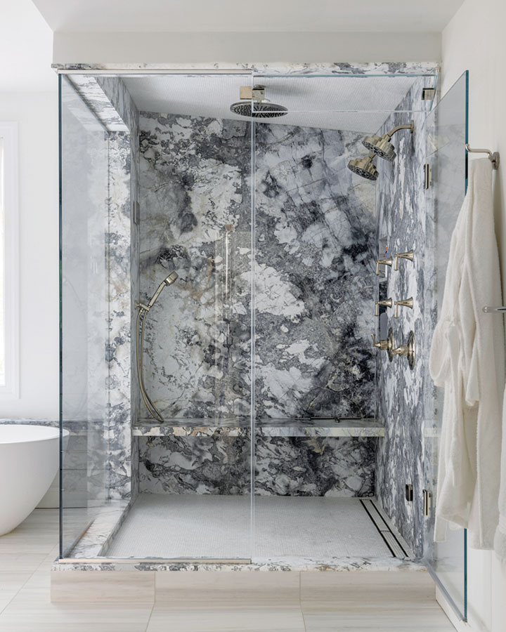 Bathrooms are evolving into spa-like retreats, with calming neutrals, organic textures and clever storage. In one remodel, waxed graphite stone walls framed a glass-enclosed shower, polished nickel fixtures added sleek contrast and honed dolomite tile softened the look—creating a space that feels bold yet serene.