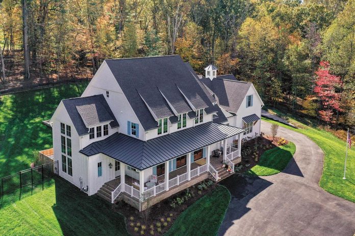Moving the existing staircase was the key to opening up the house and to creating a large kitchen and family room. Formal dining resides where the original living room was, while a home office and full bathroom provide options for future one-floor living. Upstairs, a dedicated laundry room separates the kids’ rooms from the owner’s suite overlooking the back yard.