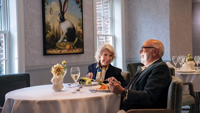 Beyond the aesthetic allure, Inspīr Embassy Row offers an extensive range of support, spanning from assisted living to memory care, tailored to meet residents’ unique needs. Its mission is to empower. Well-being is found on a dedicated wellness floor featuring a saltwater pool, sauna, steam room and salt room. In diverse, inviting dining venues, friends meet up for culinary delights. The rooftop lounge has stunning views.