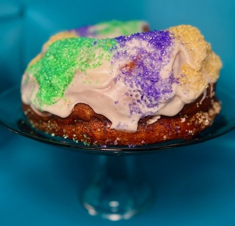 Can’t do gluten? No problem. You can still partake in purple, green and gold king cake when you pick it up from this fully gluten-free bakery. Choose from two flavors: cinnamon or pecan praline, for $50. Each king cake is frosted with a rum glaze and comes with an edible sugar baby for you to hide inside. They’re available for pickup with preorders running through Feb. 13. 410 S. Maple Ave., Falls Church