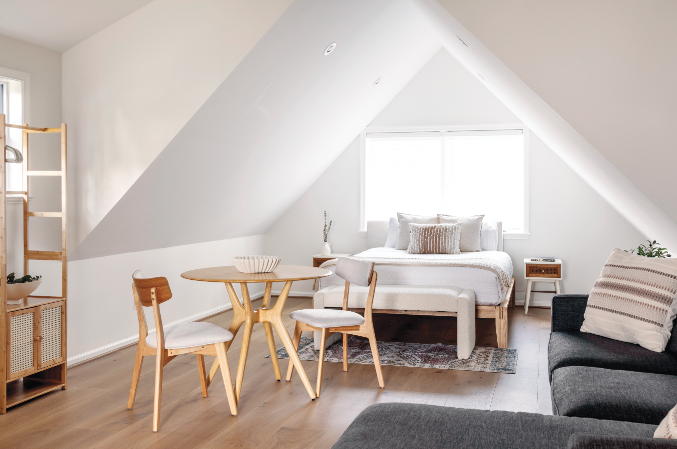 Other improvements included sprucing up the Kandahs’ detached garage with new siding and architectural detailing to match the main house. A light-filled accessory dwelling unit (ADU) above the garage contains a small bathroom, sleeping quarters and a kitchenette, serving as a guest cottage for visitors.
