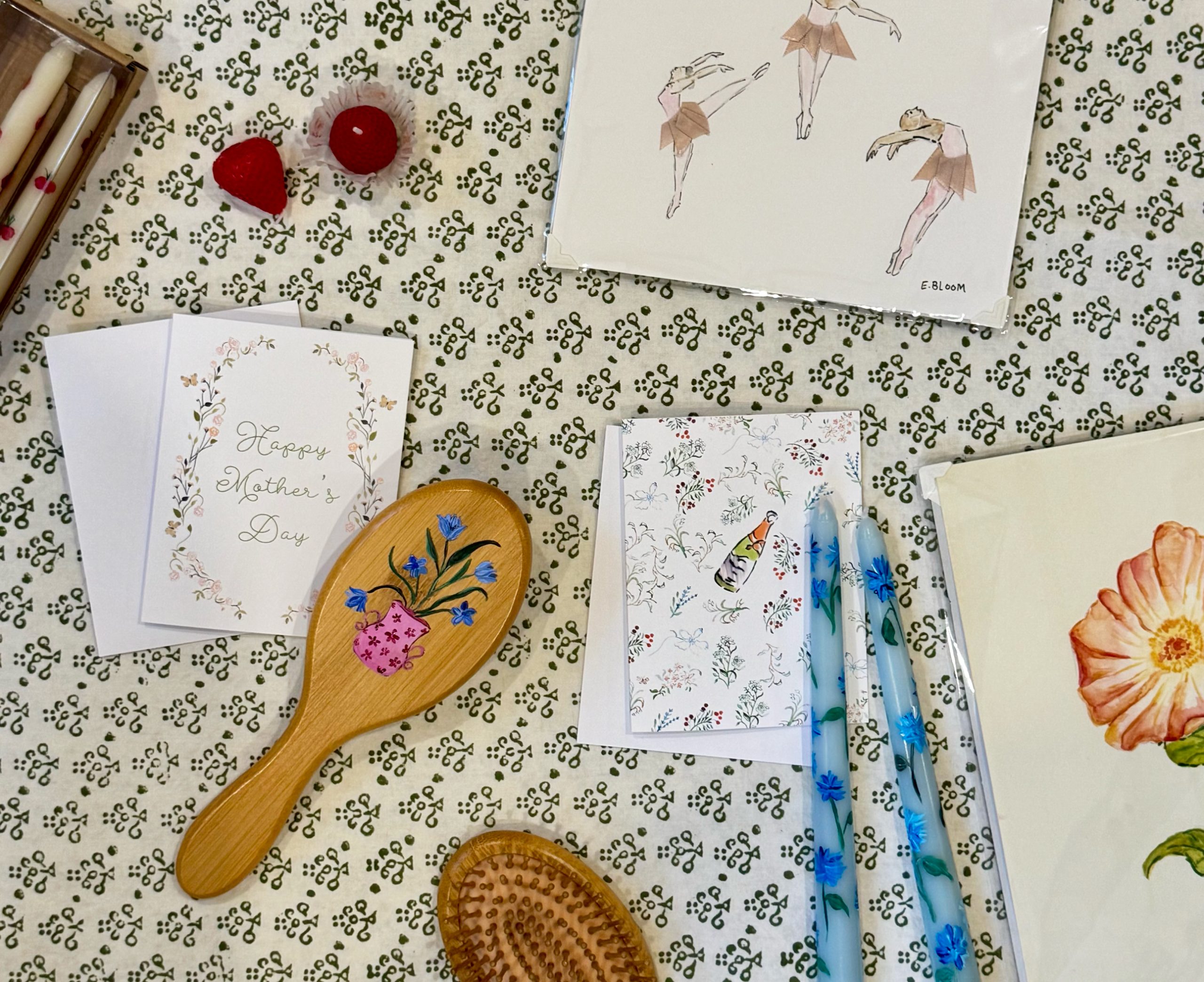 Arlington watercolor artist and graphic designer Elizabeth Bloom specializes in luxury branding and hand-painted illustrations, and has forged collabs with prestigious brands such as Vineyard Vines and Tuckernuck. Head to her website to shop prints and original art, D.C. tea towels, custom hand-painted girlie gifts and Mother’s Day cards. Coming soon: baseball hats and silk scarves, which will also be available at these spring pop-up markets.